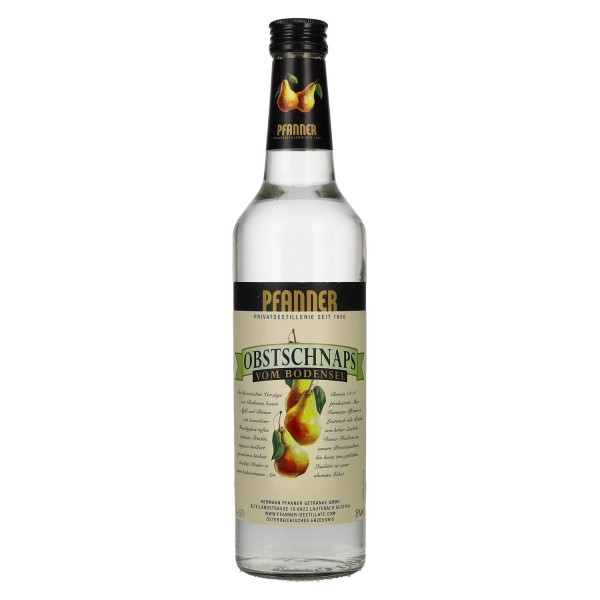 Pfanner Obstschnaps iš Bodensee yra aukštos kokybės spiritas, jungiantis geriausius Bodensee regiono vaismedžių soduose užaugintus vaisius. Sukurtas žinomos Pfanner & Gutmann Getränke GmbH, įmone su daugiau nei 160 metų distiliavimo patirtimi, šis distiliatas žymi aukščiausią kokybę ir rankų darbo tobulumą. Pfanner šeima tradicines žinias išsaugo jau penktą kartą ir derina jas su šiuolaikinėmis technologijomis, kad sukurtų nepaprastai vaisinį ir aromatingą distilatą.