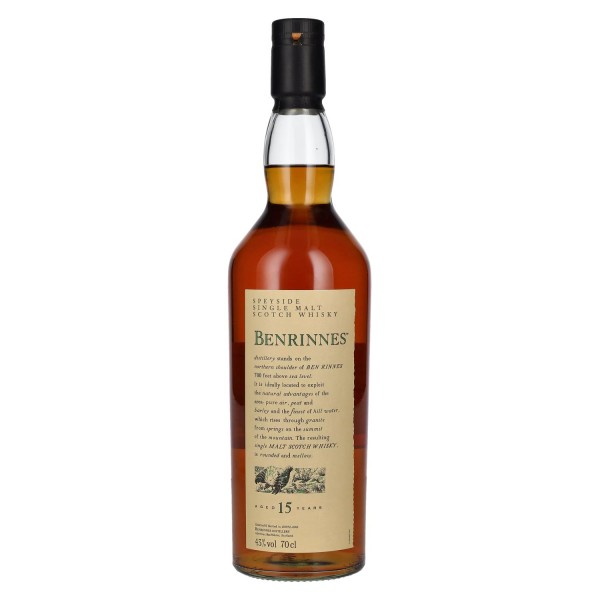 Benrinnes 15 metų brandintas – turtingas, saldus ir švelnus Single Malt viskis, kurio tamsūs kvapai atskleidžia Speyside regiono charakterį.