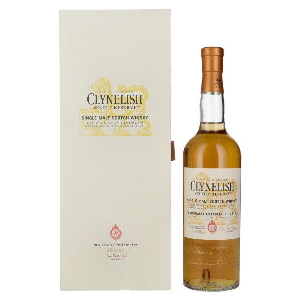 „Clynelish Select Reserve Natural Cask Strength“ yra išskirtinis buteliavimas iš žinomos Clynelish distilerijos Škotijos Highlands. Turėdamas įspūdingą 54,9 % alk. tūrio, šis viskis, pagamintas iš vieno salyklo, yra pilamas į natūralų statinį, kad būtų išlaikytas jo pilnas charakteris ir nepakartojamas intensyvumas.
