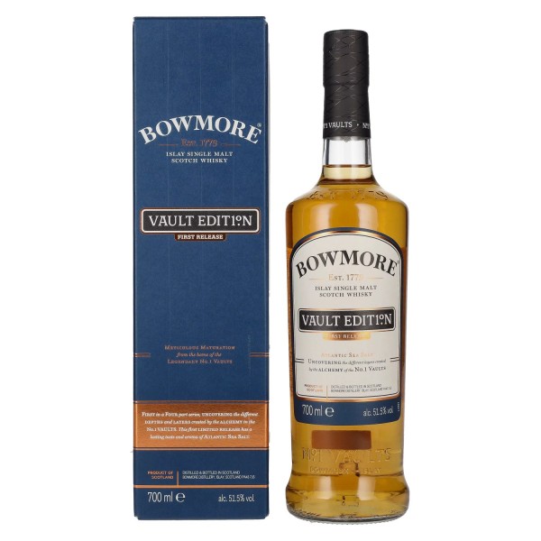 Bowmore Vault Edition Atlantic Sea Salt – Pirmoji leidimo versija iš garsios Bowmore distiliatorijos, seniausios viskio distiliavimo įmonės Islay saloje. Ši ribotos leidimo serijos versija buvo sukurta kaip pirmoji Vault Edition publikacija ir atspindi Bowmore jūrinę pusę – nuo druskos jūros oro iki torfiško dūmo ir gilių, sudėtingų aromatų.