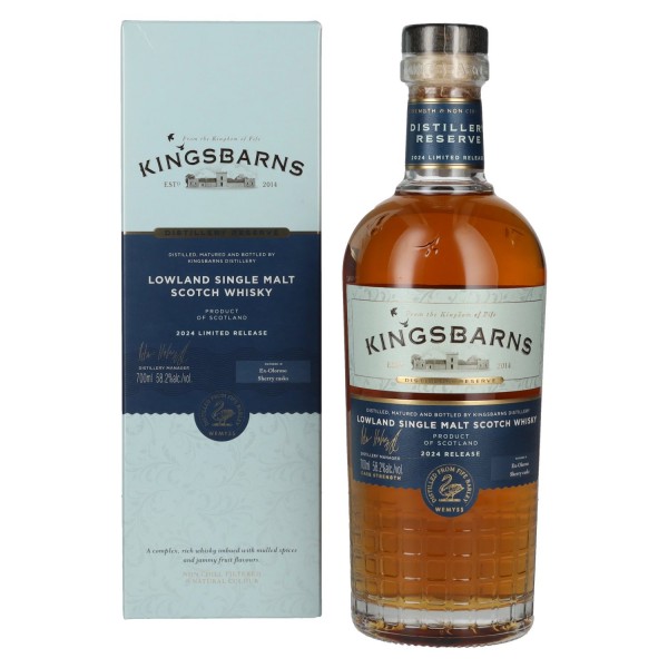 Distillery Reserve 2024 yra iki šiol brangiausias Kingsbarns Distillery viskis, riboto leidimo vieno maltinio viskio, brandintas tik Ex-Oloroso Sherry statinėse. Turėdamas apie 3000 butelių, atspindi Lowland stilių, pasižymi gyvomis vaisių natomis ir švelniais žiediniais aromatais.