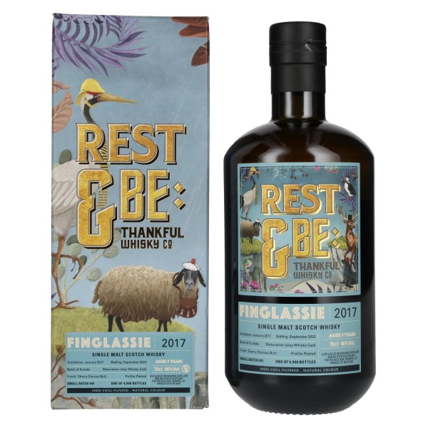 Rest & Be Thankful Finglassie 5 metų senumo Single Malt viskis 2017 iš Škotijos – išraiškingas ir ribotos partijos leidimas, kurį vertina žinovai aukštos kokybės mažos serijos viskiais.