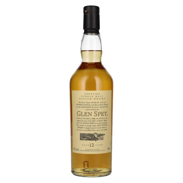 Glen Spey 12 metų iš Flora & Fauna serijos yra retas ir elegantiškas Speyside Single Malt atstovas. Distilerija Glen Spey, įsteigta 1878 metais Rothes mieste, yra Diageo grupės dalis ir daugiausia gamina viskius mišiniams. Tik keli originalių išpilstymų, panašiai kaip šis 12 metų leidimas, pasiekia rinką, todėl šis gėrimas patrauklus kolekcionieriams ir žinovams.