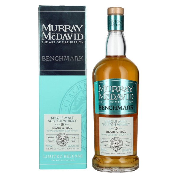 Murray McDavid BENCHMARK 16 metų Blair Athol 2008 – galingai subrendęs vieno maltų škotiškas viskis iš Škotijos Highlands, kur ypatinga finish’o pabaiga vyksta Koval bourbon statinėse iš Čikagos, suteikianti unikalią skonio įvairovę.