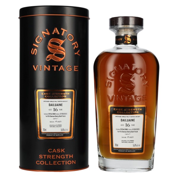 Signatory Vintage Dailuaine 16 Years Old 2008 Cask Strength #1 – tai reta ir itin stipri vienos statinės išpilstymo serija iš Signatory Vintage Cask Strength Collection, kuri yra vienas iš pripažintų nepriklausomų Škotijos pilstyklių.