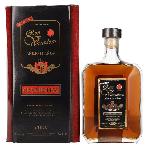 Ron Varadero Añejo 15 Años GRAN RESERVA su 38% vol. ir 0,7 l talpa yra puikus kubietiškas romas, brendęs 15 metų ąžuolo statinėse.
