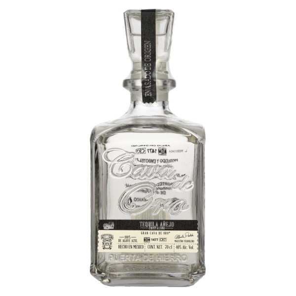 Ženklas Cava de Oro žymi aukštos kokybės 100% agavė tequilą iš Tequilera Puerta de Hierro. Ši distilerija, įsikūrusi El Arenal mieste, Jalisco valstijoje, Meksikoje, gamina rankų darbo tequilas. Mėlynosios agavos augalai yra atsargiai nuskynomi, siekiant užtikrinti geriausią kokybę. Tuomet destiliuojamos keturios variacijos: Plata, Reposado, Añejo ir Extra Añejo. Cava de Oro Añejo tequilos brendimas trunka dvejus metus, todėl ji yra itin populiari. Jis bręsta ilgiau nei minimalus vienerių metų laikotarpis, reikalingas ženklinimui Añejo. Per aktyvios anglies filtravimą tequilos tampa skaidri, neprarandant skonio. Taip gaunama skaidri 100% agavės tequilla, kuri turi Añejo tequilai būdingą sudėtingumą.