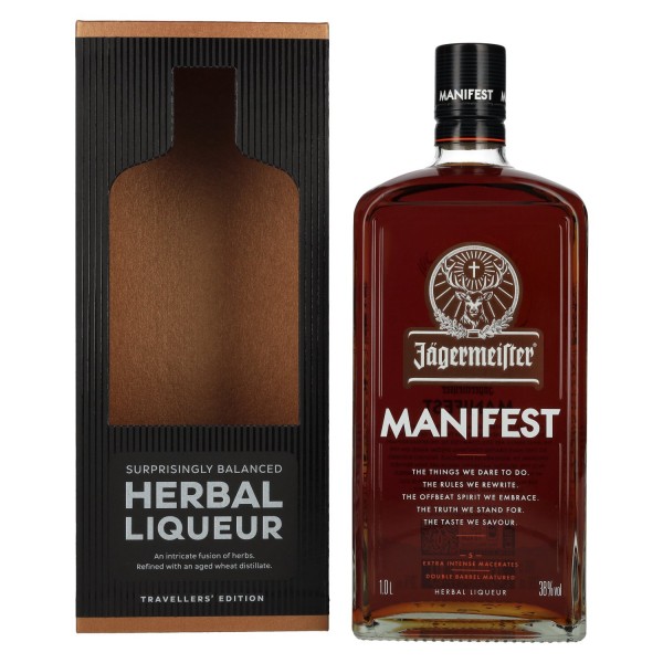 Jägermeister MANIFEST TRAVELLERS’ EDITION žolelių likeris 38% alkoholio, 1 l, kartu su dovanų dėžute, yra išskirtinai kokybiška žinomo vokiečių žolelių likerio versija.