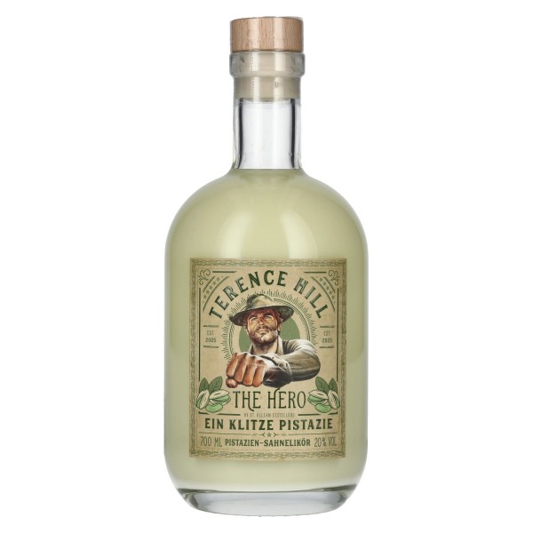 Terence Hill THE HERO Ein Klitze Pistazie – kreminis grietinėlės likeris su subtiliu pistacijų skoniu, įkvėptas legendinio kino herojaus Terence Hill.
