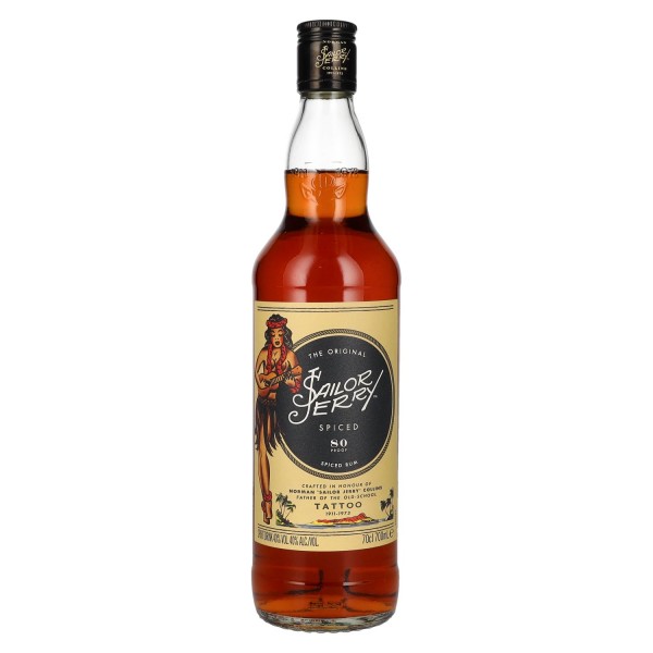 Sailor Jerry Spiced Caribbean Rum Tattoo yra stiprus, kvapnus prieskoninis romas, kurio alkoholio kiekis yra 40 % vol. ir butelio talpa 0,7 l. Šis karibų romas įkvėptas legendinės tatuiruočių kultūros ir garsiojo jūreivio Norman „Sailor Jerry“ Collins, kurio tradicinės jūreivių tatuiruotės puošia butelį. Jo išskirtinį skonį apibrėžia galingas vanilės, šiltų prieskonių ir karamelizuotų natų derinys, suteikiantis jam išskirtinį charakterį.