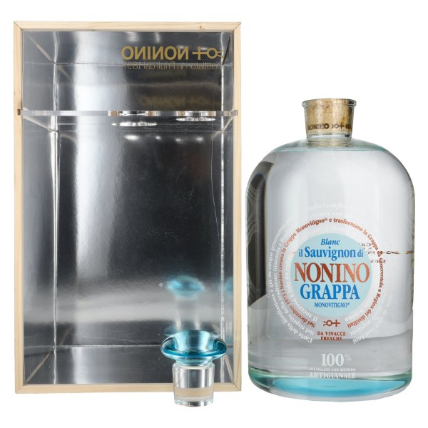 Nonino Grappa Monovitigno Il Sauvignon Blanc, įspūdingo 6,3 litro dydžio dėžėje su dozavimo pompa, yra tikras italų destiliavimo meistriškumo šedevras.