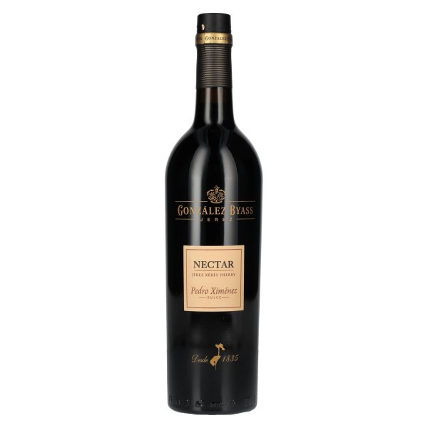González Byass Nectar Pedro Ximénez Dulce – intensyvus, pilnas desertinis vynas, kilęs iš žinomos Bodega González Byass Andalūzijos Jerez de la Frontera regione.
