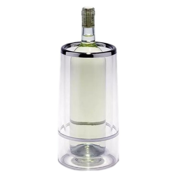 Dviejų sienelių butelių aušintuvas iš aukštos kokybės polistireno, skaidraus optikos, siūlo elegantišką ir praktišką sprendimą, kaip jūsų buteliai būtų tinkamai atšaldyti.