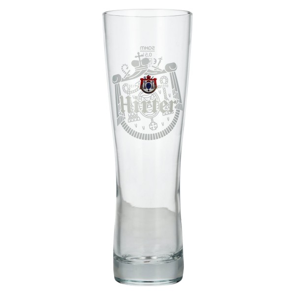 Priekyje matomas išskirtinis Hirter logotipas, suteikiantis stikliui išskirtinę prekės ženklo estetiką.