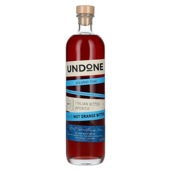 Undone Italian Bitter – This is not Orange Bitter yra novatoriška nealkoholinė kartaus skonio alternatyva, skirta klasikinių kokteilių ir aperitifų ruošimui. Pilstomas į 0,7 l buteliuką, tai modernaus itališko aperityvo kartos interpretacija – bet be alkoholio. Pagamintas iš kruopščiai atrinktų botaninių augalų, prieskonių ir citrusinių esencijų, jis suteikia kompleksišką aromatų spektrą, kuriame dominuoja kartumas, gaiva ir lengvas vaisiškumas. Tai puiki pasirinkimo galimybė visiems, kurie renkasi alkoholio atsisakymą, bet nenori prarasti autentiško skonio ir įvairovės.