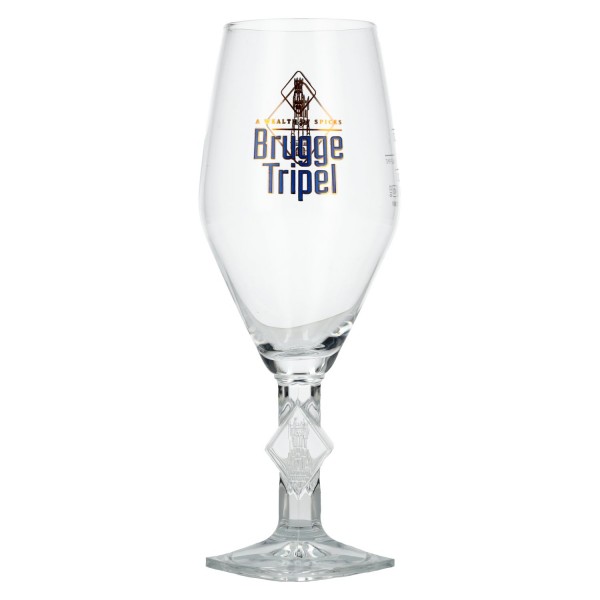 Priekyje pavaizduotas išskirtinis Brugge Tripel logotipas, suteikiantis stikliui autentišką prekinį ženklą.