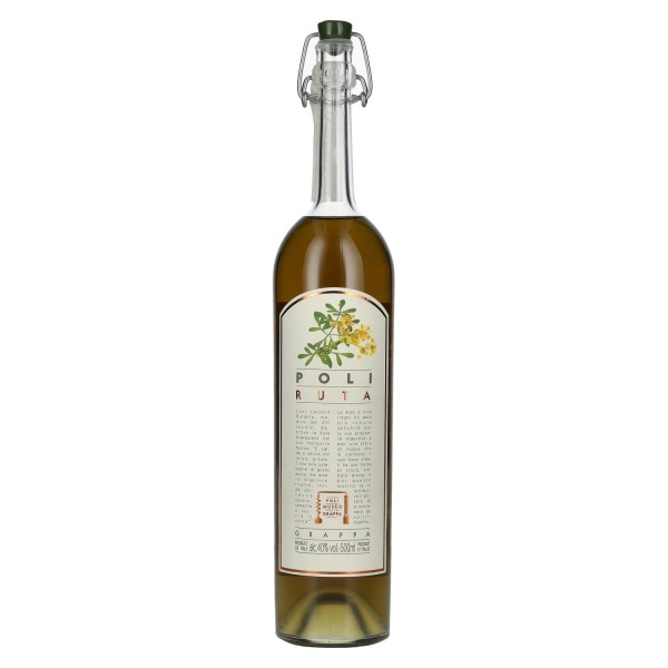 Poli Grappa Ruta – tradicinė, aromatinga grappa su žolelių infuzija, išsiskirianti ryškiu gaivumu ir intensyviu žolelių kvapu.
