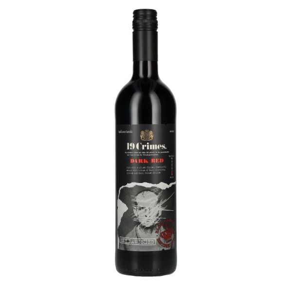Die Cuvée wird aus den klassischen Rebsorten Shiraz, Cabernet Sauvignon und Grenache vinifiziert, die im warmen Klima Australiens optimale Reifebedingungen finden. Die Trauben werden sorgfältig verarbeitet, um die kräftige Frucht, die reifen Tannine und die würzigen Noten perfekt zu bewahren. Mit einem Alkoholgehalt von 13,5 % Vol. präsentiert sich der The Banished Dark Red leichter im Alkohol als viele andere australische Rotweine, bleibt dabei aber vollmundig, fruchtbetont und intensiv. Verkosternotiz: Im Glas zeigt sich der 19 Crimes The Banished in einem dunklen Rubinrot mit violetten Reflexen. In der Nase entfalten sich kräftige Aromen von reifen Brombeeren, Schwarzkirschen und Pflaumen, begleitet von Noten von Schokolade, Vanille und süßen Gewürzen. Am Gaumen wirkt er samtig und dicht, mit reifen Tanninen, saftiger Frucht und einem langen, kraftvollen Abgang, der seine dunkle Aromatik elegant ausklingen lässt.