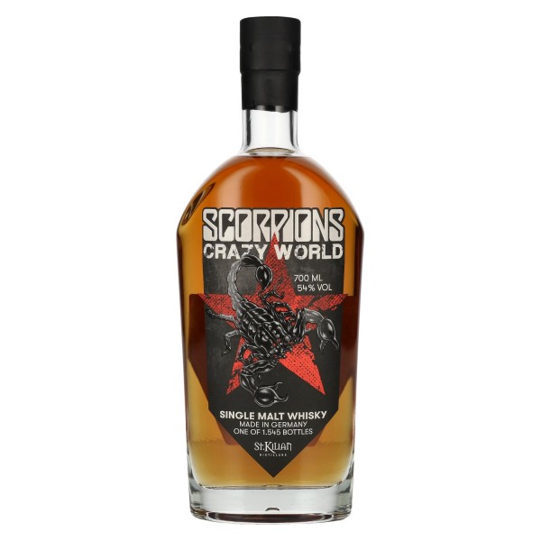 St. Kilian Scorpions Crazy World Single Malt Whisky – įspūdinga leidimo forma, sukurta bendradarbiaujant St. Kilian Distillers iš Bavariijos Rüdenau ir legendinei roko grupei Scorpions, įkvėpta ikoninio 1990 metų albumo Crazy World. Tai viskis kaip himnas, bręstas Ex-Weinbrand statinėse bei šviežių ąžuolo ir kastanijų statinėse. Šis ypatingas viskis sujungia vokiečių distiliavimo tikslumą su prancūziško vyno brandy statinių elegancija ir šviežių medžių pikantiškumu. Prinokusios saldumo, švelnios medienos natos ir švelnus Viduržemio jūros lengvumo pojūtis susilieja į daugiabriaunį ir intensyvų skonio potyrį, kurį įvertins tiek muzikos mylėtojai, tiek viskių entuziastai.