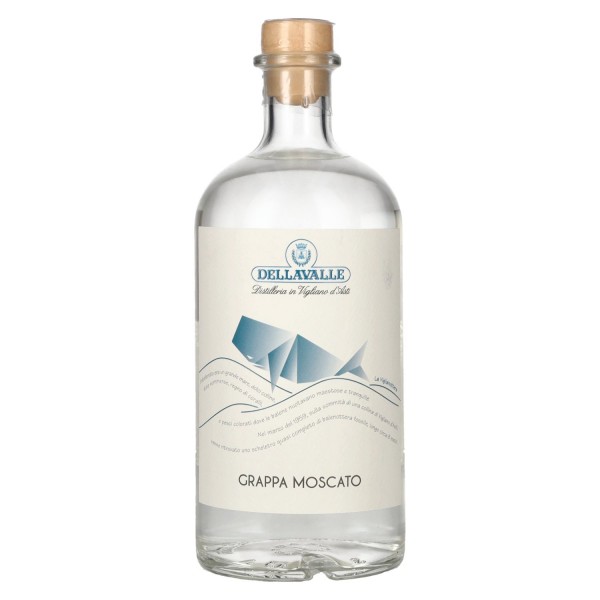 Dellavalle Grappa Moscato kilęs iš Dellavalle distilleria Italijoje Vigliano d’Asti. Šiai skaidriai, kvapniai grappa išskiria Muskatų vynuogių natų eleganciją. Jam naudojamas tik šviežias Moscato trupinys iš Piemonte, distiliuojamas mažose varinėse garinimo kolbose, kad būtų išlaikytas natūralus aromatas. Nuo 1983 metų ši šeimos įmonė puoselėja tradicijas ir teikia aukštos kokybės produktus, todėl Grappa Moscato pasižymi aiškiu, rūšiai būdingu profiliu. Subtilus aromatų profilis, švelnus Muskatų saldumas ir natūralus lengvumas daro šį gėrimą lengvai prieinamą ir elegantišką atstovą savo kategorijoje. Su 42 % alk. tūrio, jis išlieka švelnus, vaisingas ir maloniai švelnus išraiška.