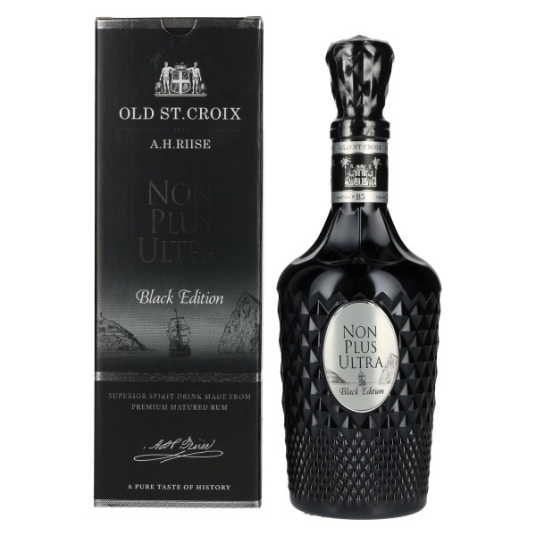 Old St. Croix NON PLUS ULTRA Black Edition Superior Spirit Drink 42 % alk. tūrio yra išraiškingas gėrimas, priklausantis Old-St. Croix linijai ir žinomas dėl intensyvių, į fassą orientuotų brandinimo niuansų. Juodoji leidyba pasirodo kaip itin aromatinė versija, kurią formuoja kruopščiai subrendusios distilatai ir kuri turi gilų, tamsų charakterį. Šios natos derinys – šilto medienos atspalviai, subtilus saldumas ir ryškūs prieskoniai – suteikia šiam spirit drinkui aiškią, jau pirmą įspūdį paliekančią išskirtinę įtaką. Butelio dizainas ir dovanų dėžutė pabrėžia šio leidimo serijos išskirtinumą ir išryškina tamsų, galingą stilių.