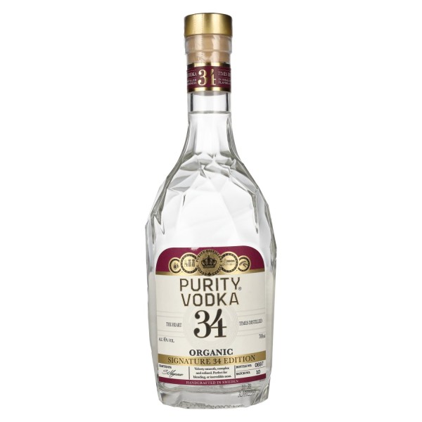 Purity Signature 34 Edition Organic Vodka yra apdovanotas premium degtinės iš Švedijos, gaminamas Purity Distillery, Schloss Ellinge pilyje netoli Malmö. Purity degtinė tarptautinėje rinkoje žinoma dėl nekompromisinės kokybės, dėmesio tvarumui ir kruopštaus distiliavimo metodo, kuris suteikia jai itin švelnų charakterį. Skaičius 34 nurodo išskirtinį distiliacijų skaičių, kuriuo ji praeina. Per 17 valandų trunkančiame procese ji distiliuojama specialiose varinėse ir nerūdijančio plieno distiliavimo kolbose, suteikiančiose jai išskirtiną grynumą ir elegantišką struktūrą. Gaminama iš ekologiškai užaugintų kviečių ir miežių, sumaišytų su grynu šaltiniu iš pietų Švedijos. Su 40 % alk. tūrio šis gėrimas demonstruoja subalansuotą minkštumą ir charakterį. Šis organinės kilmės degtinė ne tik turi ekologinę sertifikaciją, bet ir yra gaminama mažomis partijomis – atspindinti Skandinavijos kokybės ir aplinkos apsaugos tradiciją.