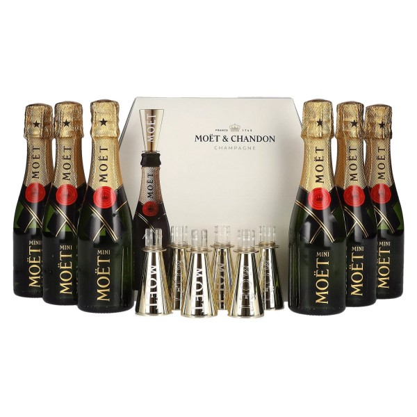 Moët & Chandon Champagne AT HOME PACK 12 % alk. tūrio, 6×0,2 l dovanojimo dėžutėje su Bottle Sipper.