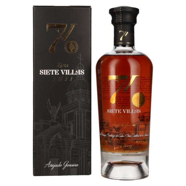Ron 7 Siete Villas 1511 Añejado Genuino Rum 40 % alk. tūrio, 0,7 l, pristatomas dovanų dėžutėje, atspindi karibų rumų tradicijas. Šis romas gaunamas iš išskirtinės melasos ir bręsta kelis metus statinėse, įgaudamas subalansuotą struktūrą ir elegantiškai įsikomponuojančias medienos bei prieskonių natas. Aromatinė gylis kyla iš tropinio klimato, ilgo brendimo ir autentiškos gamybos filosofijos, kuri puoselėja karibų rumų tradiciją. Puikiai tinka tyram gėrimui arba su ledu; taip pat dera su tamsia šokolade, karamelizuotais desertais, vanilės ledais, riešutų kepiniais ar bananų pyragu. Kokteiliuose, tokiuose kaip Rum Old Fashioned, Mai Tai, Cuba Libre ar Rum Sour, jis suteikia subalansuotą pagrindą.