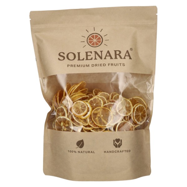 Solenara Premium Dried Fruits LEMON 250 g suteikia intensyvų citrinų aromatą pačioje gryniausioje, natūraliausioje formoje – idealiai tinkama profesionaliam naudojimui kokteiliuose, longdrinkuose ir aperityvuose.