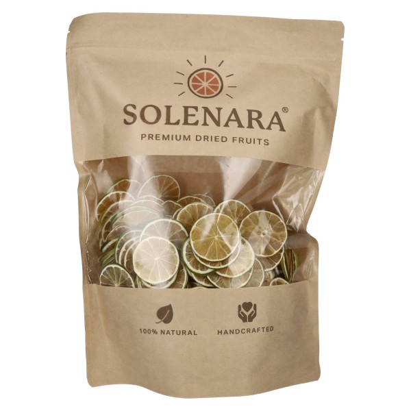 Die getrockneten Limettenscheiben bestehen zu 100 % aus echter Frucht, ganz ohne Zusätze oder Konservierungsmittel. Durch das besonders schonende Trocknungsverfahren bleiben Farbe, Struktur und das charakteristische Limettenaroma vollständig erhalten. Bereits nach fünf Minuten im Getränk wirken die Scheiben wie frisch geschnitten – mit glänzender Oberfläche, intensiver Farbe und vollem Fruchtcharakter.