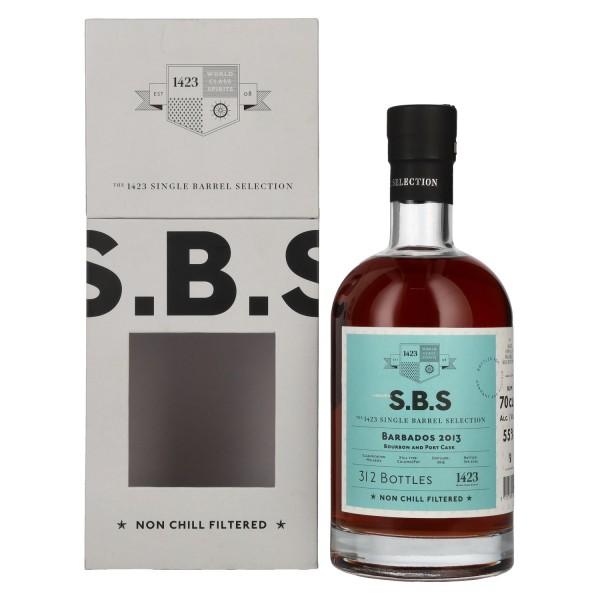1423 S.B.S BARBADOS Bourbon and Port Cask 2013 yra riboto tiražo romas iš Barbadoso, pasirinktas kaip vieno statinės selekcija iš 1423 World Class Spirits. Distiliuotas 2013 m., pirmiausia subrendęs Ex-Bourbon statinėse, o vėliau užbaigtas Port vyno statinėse. Derindamas klasikinės bourbon statinės įtakos su vaisinėmis Port natos, šis romas pasižymi sudėtingu aromatiniu profiliu ir tvirta struktūra. Išpilstytas su 55 % alk. tūrio, be šalto filtravimo ir be dažiklių, šis romas išlieka autentiškas ir intensyvus. Pakuotė: dovanų dėžutėje.
