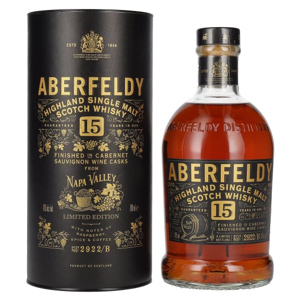 „Aberfeldy 15 Years Old Red Wine Casks viskis“ – dalis Aberfeldy Red Wine Cask Collection riboto leidimo asortimento.