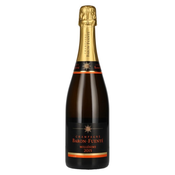 Baron-Fuenté GRAND MILLÉSIME Brut 2015 – išraiškingas metų šampanas, atspindintis vieno iš didžiųjų Champagne metų kokybę. Tik keli metai laikomi Millésime – 2015 m. įeina į šią prestižinę grupę. Vėsus, drėgnas vasaros laikotarpis, o vėliau šiltas ruduo sukūrė idealias sąlygas sunokusioms vynuogėms, išlaikant gaivumą ir aromatinį gilumą. Uogos kilusios iš geriausių sklypų palei Vallée de la Marne iki Charly-sur-Marne, vienos iš svarbiausių Champagne regiono vietovių. Cuvée iš 45 % Chardonnay, 40 % Meunier ir 15 % Pinot Noir sujungia eleganciją, gaivumą ir struktūrą. Jį išsaugo šaltajam spaudimui ir vynifikacijai inox statinėse atliktas procesas, leidžiantis išlaikyti ryškią vaisių išraišką ir preciziją. Ilgas mielių laikymas suteikia šiam Brut Millésime gilų, harmoningą įspūdį ir subtilų, ilgo trunkančio putojimo charakterį. Su 12,5 % alk. tūrio šis prancūziškas šampanas yra subalansuotas, galingas ir tuo pačiu elegantiškas. Patiekimo temperatūra: 8–10 °C, padeda atskleisti šio Grand Millésime charakterį.