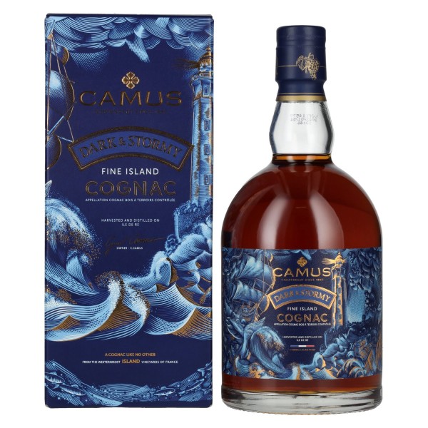 Camus DARK & STORMY Fine Island Cognac – išskirtinis konjakas, kurio jūrinis kvapas primena švarų, gaivų jūros vėjo šnabždesį. Jo charakterį formuoja reikšminga distiliato dalis iš rudens 2010 metų, todėl šis konjakas yra retas ir nepakartojamas. Gamyba vykdoma Le Bois-Plage-en-Ré, distilerijoje, esančioje Île de Ré saloje, įkurtoje 1972 m. Regiono kalkinis ir smėlingas dirvožemis, papildytas Atlanto jūros dumbliais, sudaro idealias sąlygas vynuogėms ir suteikia konjakui išskirtinį charakterį. Tradicija ir terroiras susilieja į išskirtiną produktą.