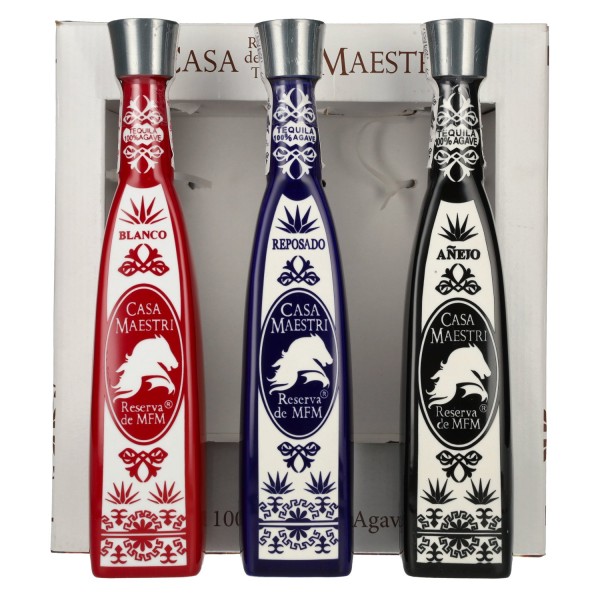 Casa Maestri MFM Tequila Gift Set sujungia tris charakteringus 100% Blue Weber agave tekilas į aukštos kokybės rinkinį ir suteikia išsamų įžvalgą į gamintojo Casa Maestri stilių. Rinkinys susideda iš trijų butelių po 0,35 l ir pristato skirtingas brandos pakopas, kurios atspindi distilerijos amatsą. Gaminamas Jalisco regione, Meksikoje, visuose išpilstymuose naudojama tik Blue Weber agave. Su 40 % alk. tūrio šioms tequiloms būdingas tikslumas, autentiškumas ir aiški agavės aromata.