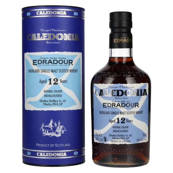 Edradour Caledonia 12 metų Highland Single Malt viskis iš Škotijos Highland regiono, pavadintas pagal žinomą Dougie Maclean dainą „Caledonia“, ir taip tapęs Škotijos gimtinės pagerbimu. Pakuotė yra dovanojimo dėžutėje.