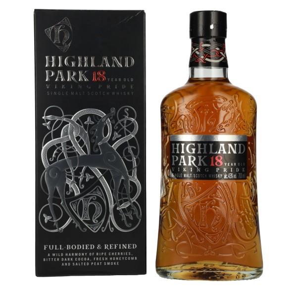 Highland Park 18 Years Old VIKING PRIDE Travel Edition Single Malt Scotch Whisky yra vienas iš žinomiausių ir pripažintiniausių Highland Park distilerijos išpilstymų, pristatomas dovanų dėžutėje. Gaminamas Orknejų salose, šis viskis sujungia jūrinį įtaką su švelniu, kontroliuojamu dūmingumu, kuris skiriasi nuo sunkiųjų Islay stilių. Brandinimas truko 18 metų, daugiausia Sherry statinėse iš Europos ir Amerikos ąžuolo, papildomai naudojant parinktas Bourbon statines, todėl atsiranda gilumas, struktūra ir elegancija.