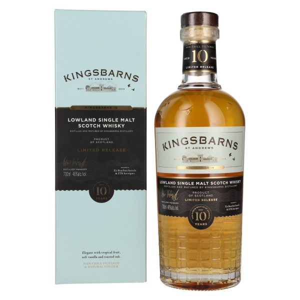 Kingsbarns 10 metų viskis iš Lowland regiono yra oficiali riboto leidimo 10 metų amžiaus iš Kingsbarns Distillery Škotijoje ir žymi svarbų distiliatoriaus istorijos momentą. Ši riboto leidimo versija yra itin ribota ir atspindi distilerijos stilistinę kalbą: elegantiškas, vaisinis ir rankų darbo įspūdis. Gaminamas iš Škotijos salyklo ir tradiciniu Pot Still metodu distiliuojamas, šis išpilstymas parodo, ką kruopštus brandinimas ir tiksliai parinktos statinės gali sukurti, kai susijungia du skirtingi statinių profiliai.