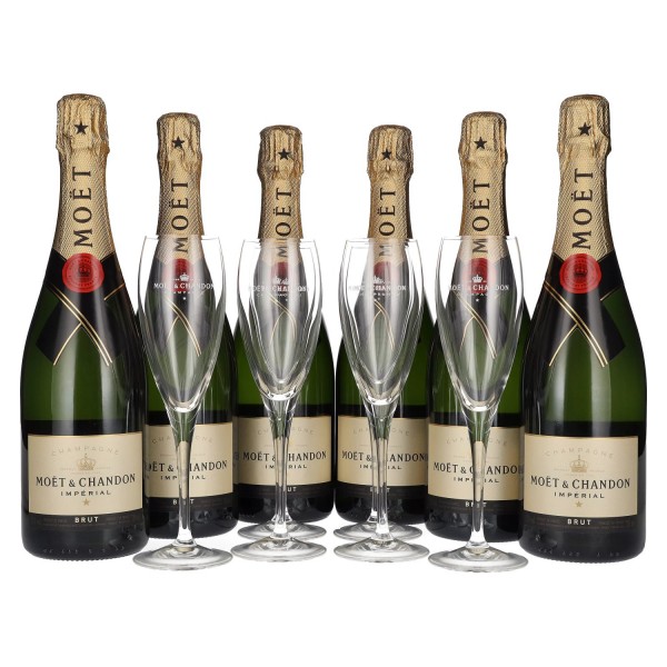 „Moët & Chandon“ šampanas „Impérial Brut“ 12,5 % tūrio yra prancūziško šampano meno įsikūnijimas ir įkūnija neabejotiną „Moët & Chandon“ stilių, kuris nuo 1743 m. simbolizuoja meistriškumą, eleganciją ir prabangą. Šiame išskirtiniame rinkinyje yra 6 buteliai po 0,75 l ir 6 puikios šampano taurės, supakuotos aukštos kokybės dovanų dėžutėje – idealiai tinka kaip stilinga dovana arba šventine proga.