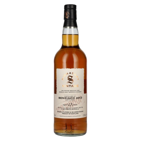 Išpilstyta nepriklausomo Signatory Vintage; ši edicija kilusi iš BENRIACH distilerijos, garsėjančios plataus stiliaus ir išskirtinio salyklo natos charakteriu. Distiliuotas 2013 m. ir brandintas 12 metų, šis viskis demonstruoja subalansuotą ryšį tarp distilerijos charakterio, brandinimo laikotarpio ir gilios struktūros. Atrinktas statinės #69 specialiai 100 Proof Edition, siekiant išryškinti išraišką, gilumą ir aiškumą.