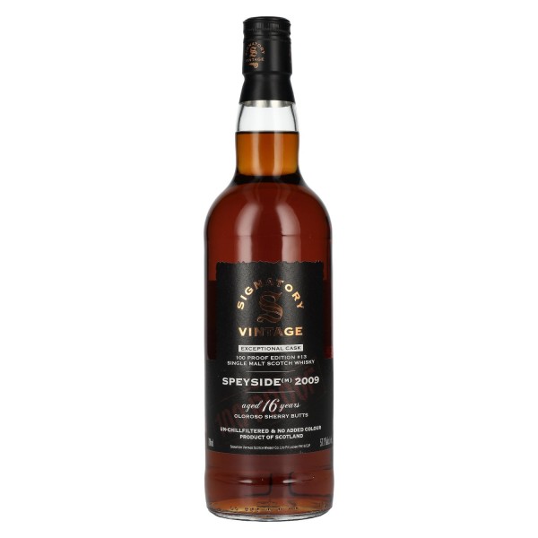 „Signatory Vintage 100 Proof Edition SPEYSIDE (M) 2009 16 Years Old Exceptional Cask #15“ – galingas Speyside viskis, atspindintis Signatory Vintage nepriekaištingą buteliavimo filosofiją. Destiliuotas 2009 metais ir brendęs 16 metų, gėrimas kilęs iš žinomos Speyside regiono distilerijos, kuri tradiciškai žinoma dėl elegantiško, salyklo dominavimo stiliaus.