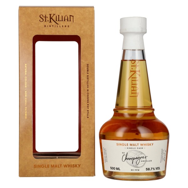 St. Kilian EX CHAMPAGNER VIN CLAIR Single Cask Malt viskis atspindi nepriklausomą Vokietijos viskio meistriškumą ir išskirtinį statinės pasirinkimą. Gaminamas tradicinėje St. Kilian Distillers distilerijoje Unterfranken regione Vokietijoje, šis Single Cask viskis iš kruopščiai maltų miežių ir tradicinio distiliavimo. Brandinimas įvyko Ex-Champagner Vin Clair statinėje, kuri anksčiau buvo laikyta šampano pagrindiniam vynui, todėl viskis įgauna gilumo, gaivumo ir elegantiškos struktūros.