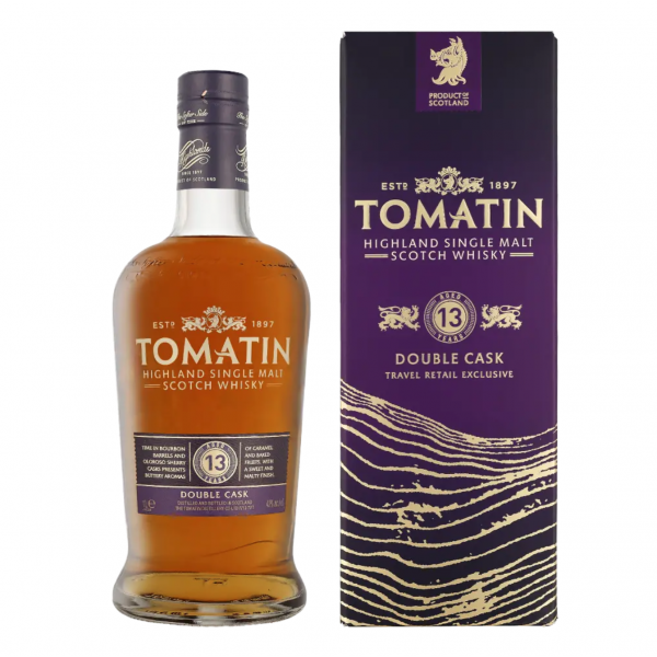 „Tomatin 13 Year Old Double Cask“ – išskirtinis viskis iš Škotijos aukštumų. Šis gardus gėrimas gaminamas garsiojoje „Tomatin“ distiliavimo gamykloje, veikiančioje nuo 1897 m. ir garsėjančioje savo gardžiais vieno salyklo viskiais. „Tomatin 13 Year Old Double Cask“ gamyba prasideda tradicine distiliacija puodiniuose distiliavimo aparatuose. Viskis pirmiausia brandinamas ąžuolo statinėse, o vėliau – „Tawny Port“ ir „Oloroso Sherry“ statinėse. Šis „dvigubos statinės“ procesas suteikia viskiui unikalų charakterį ir sudėtingą skonio profilį. Be to, viskis nėra šaldomas ir nedažytas, todėl išsaugomi autentiški jo skoniai. Tomatin“ turi turtingą istoriją kaip viena iš škotiško viskio gamybos pradininkių. Iš pradžių įkurta maišytam viskiui, neseniai ji perorientavo savo verslą į aukščiausios kokybės vieno salyklo viskių gamybą. Distiliavimo gamykla yra 315 metrų aukštyje, todėl ji yra viena aukščiausiai įsikūrusių Škotijoje. Ši unikali vieta prisideda prie jų viskių kokybės, atsižvelgiant į vėsų klimatą, idealiai tinkantį brandinimui.